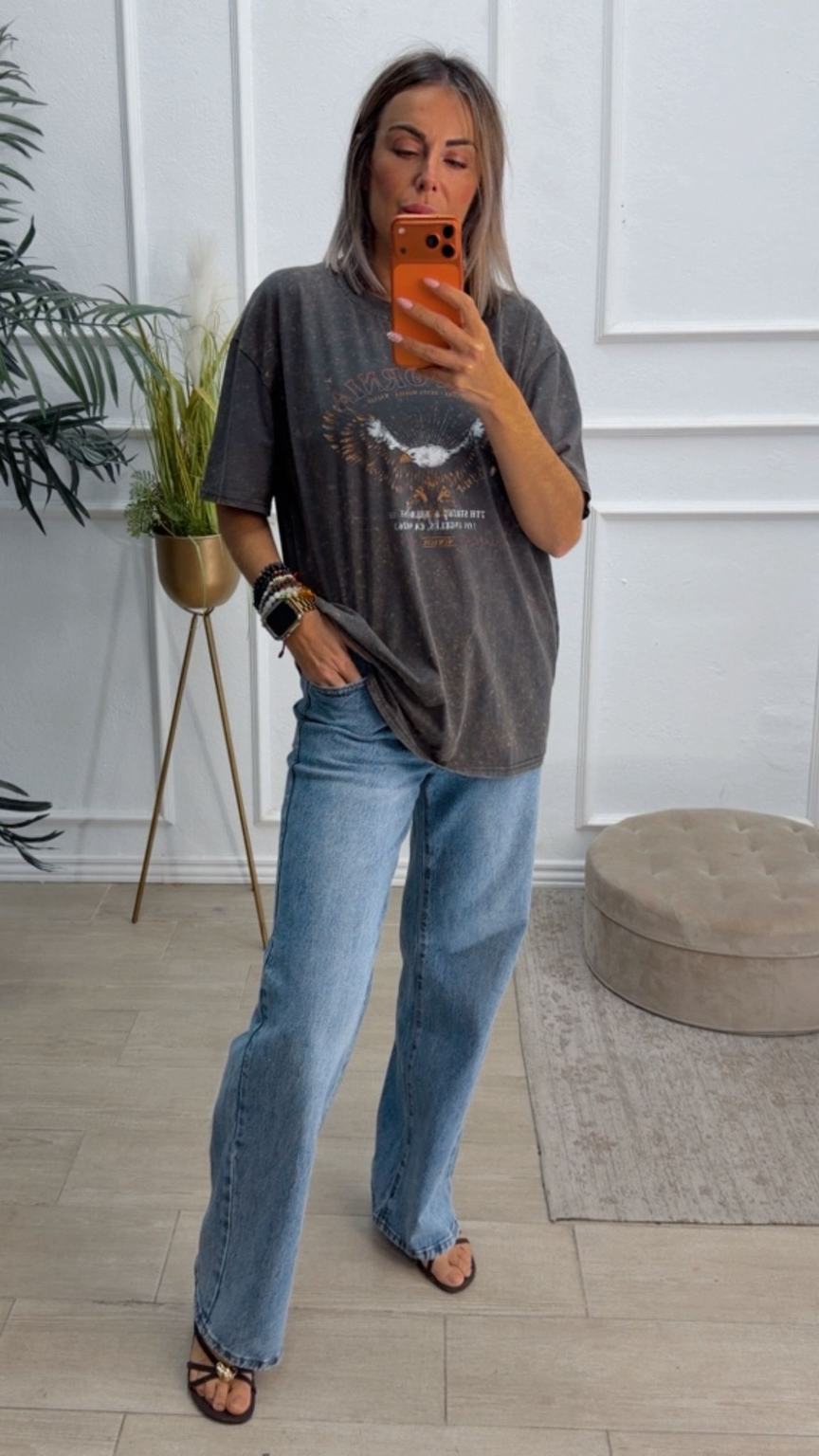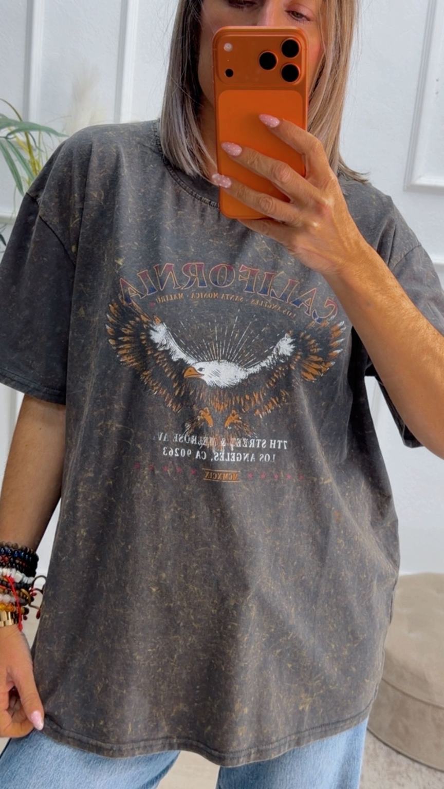 Camiseta de mangas cortas en color gris oscuro con dibujo delante.