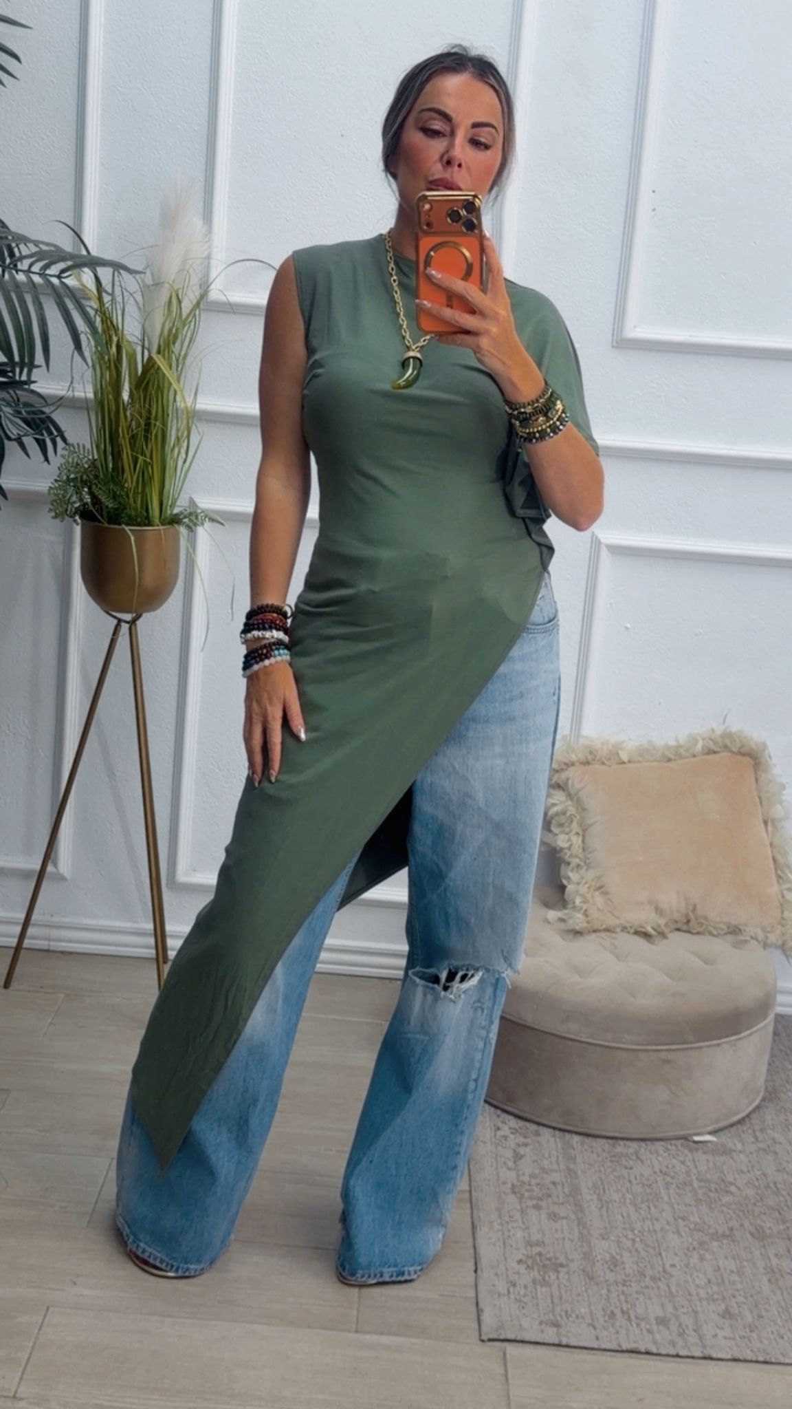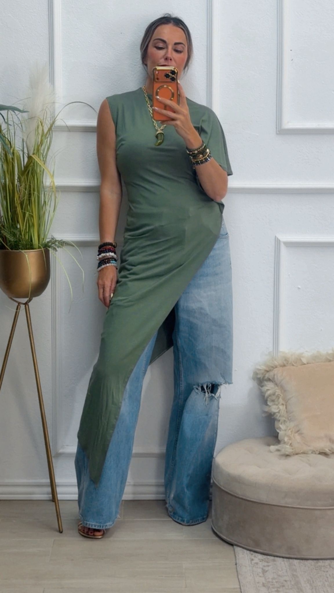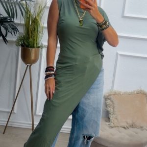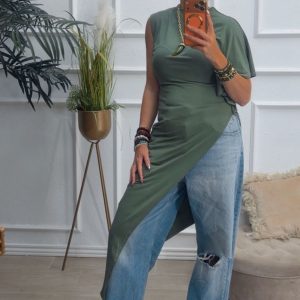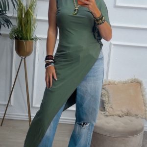 Camiseta asimétrica en color verde kaki.