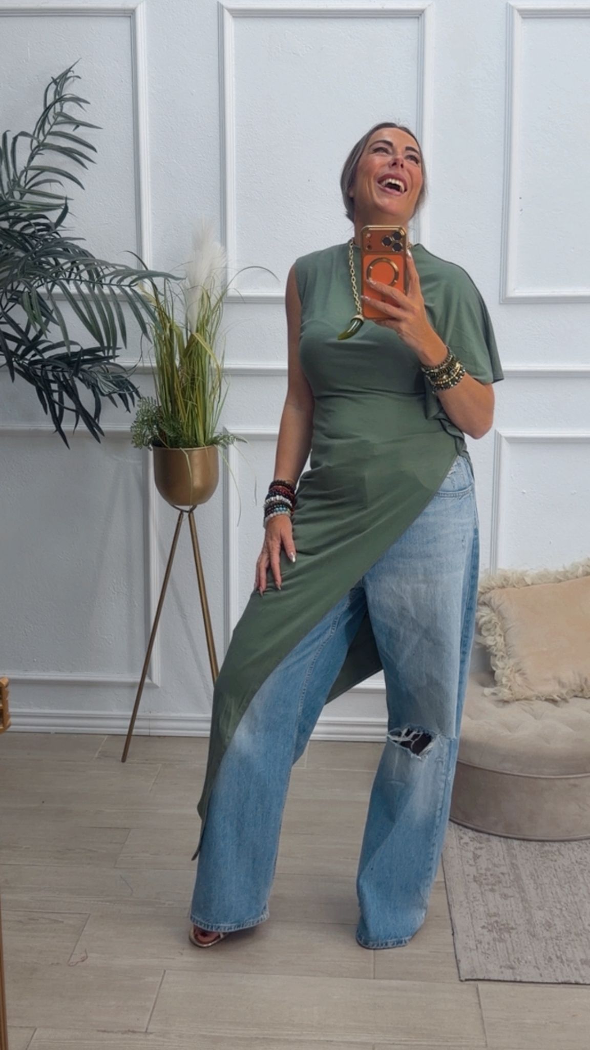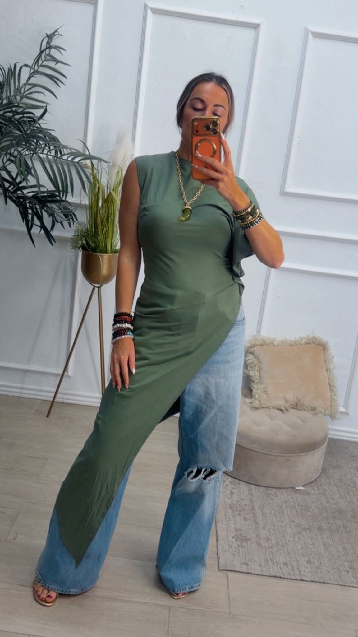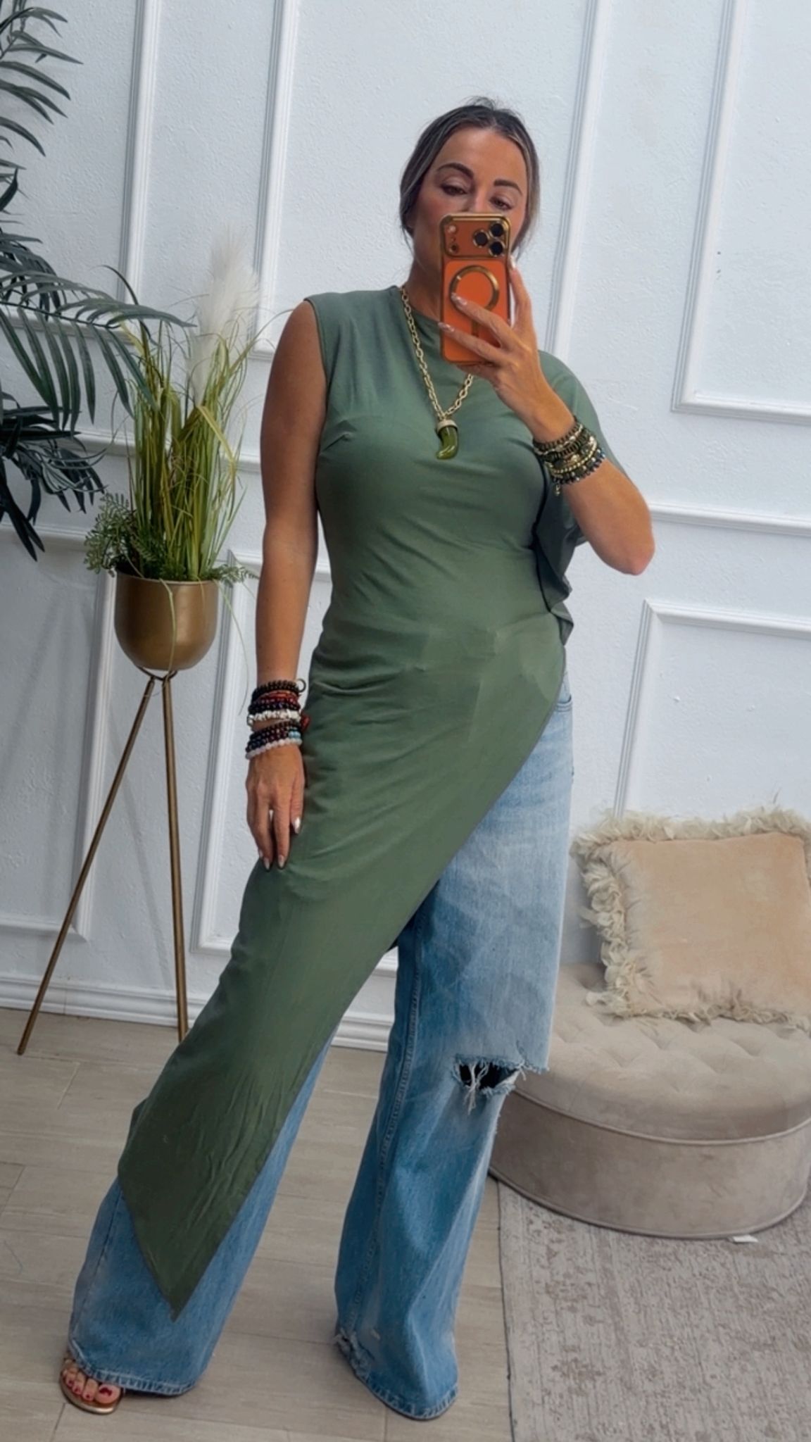 Camiseta asimétrica en color verde kaki.