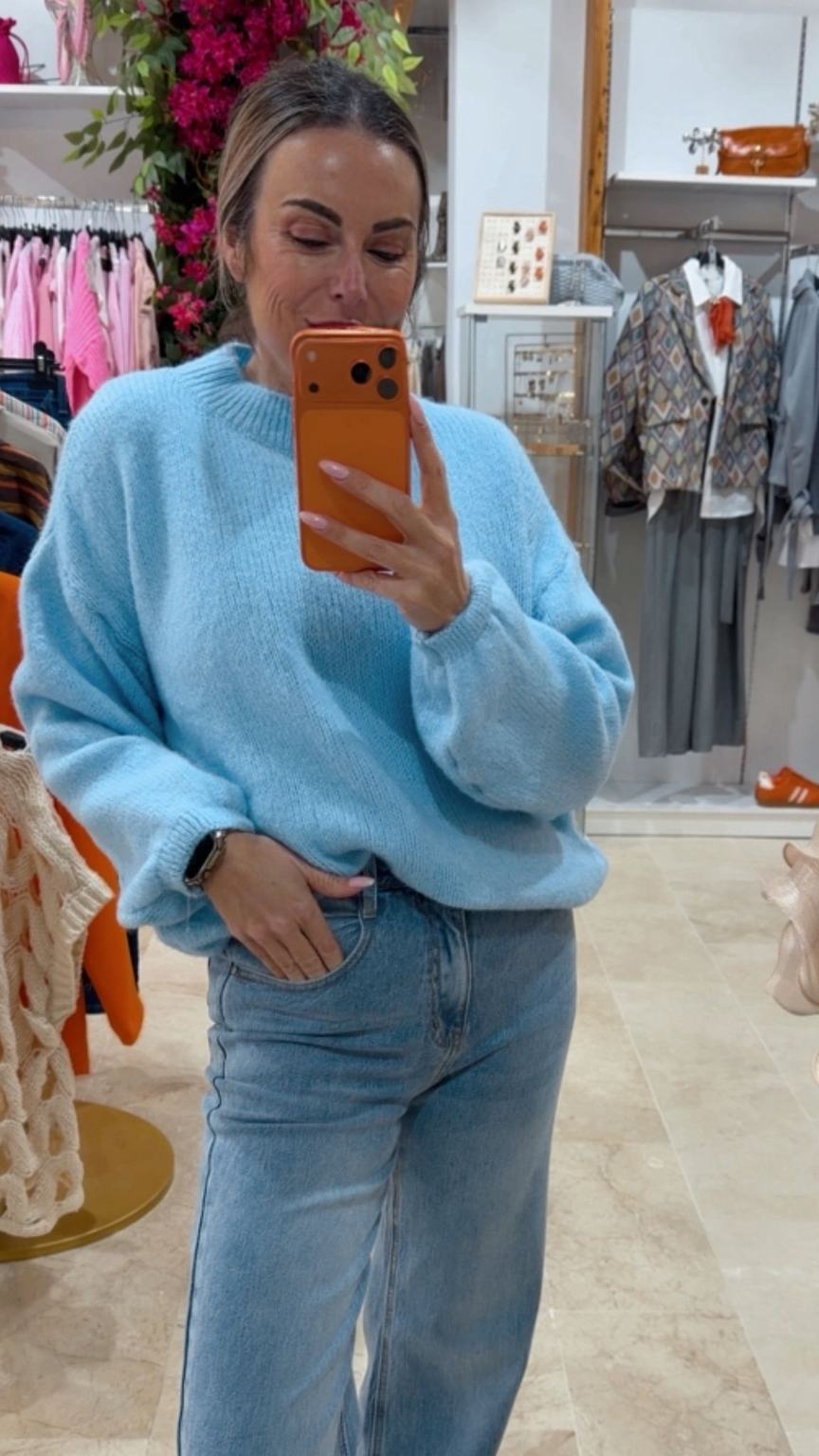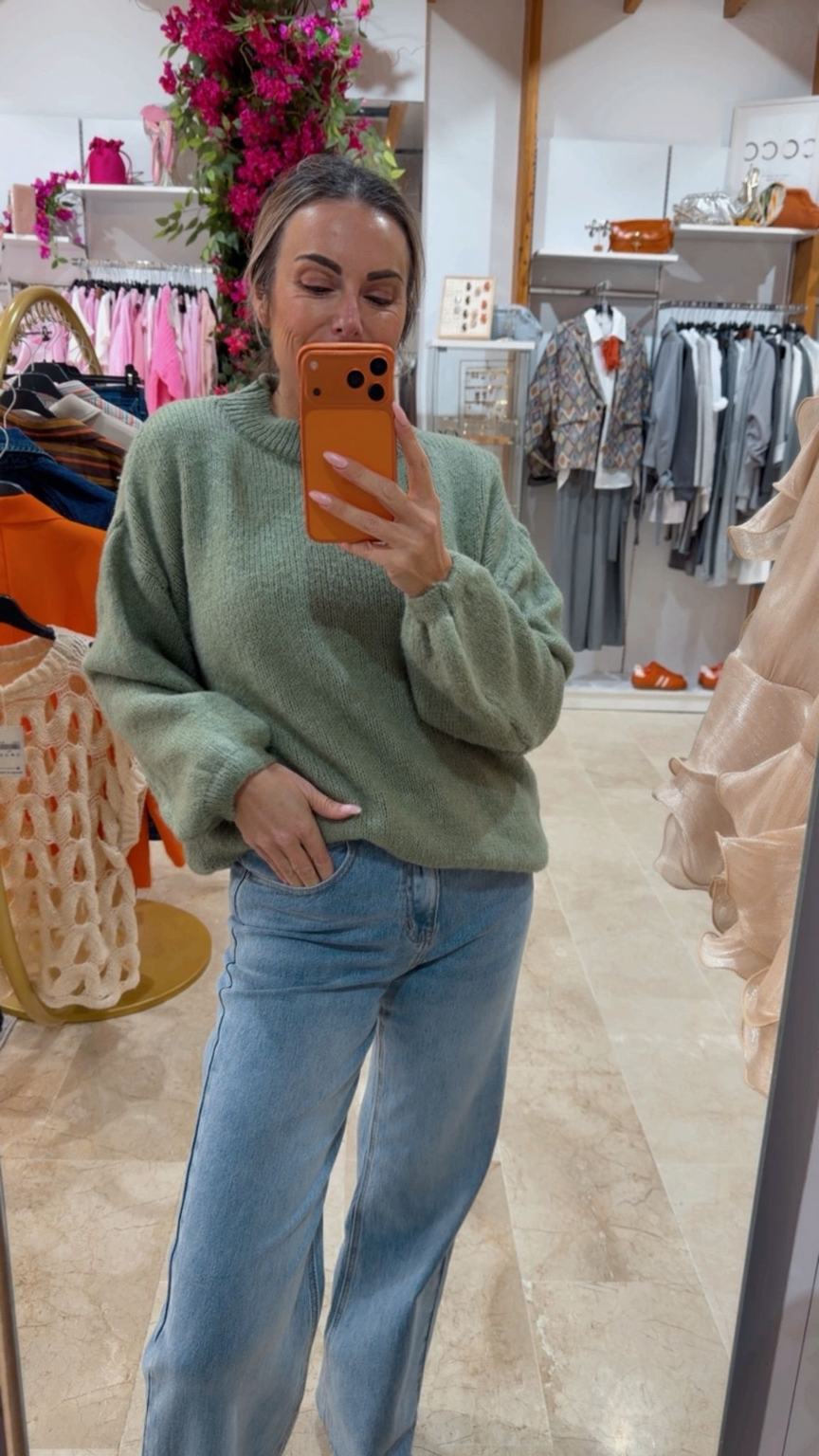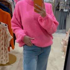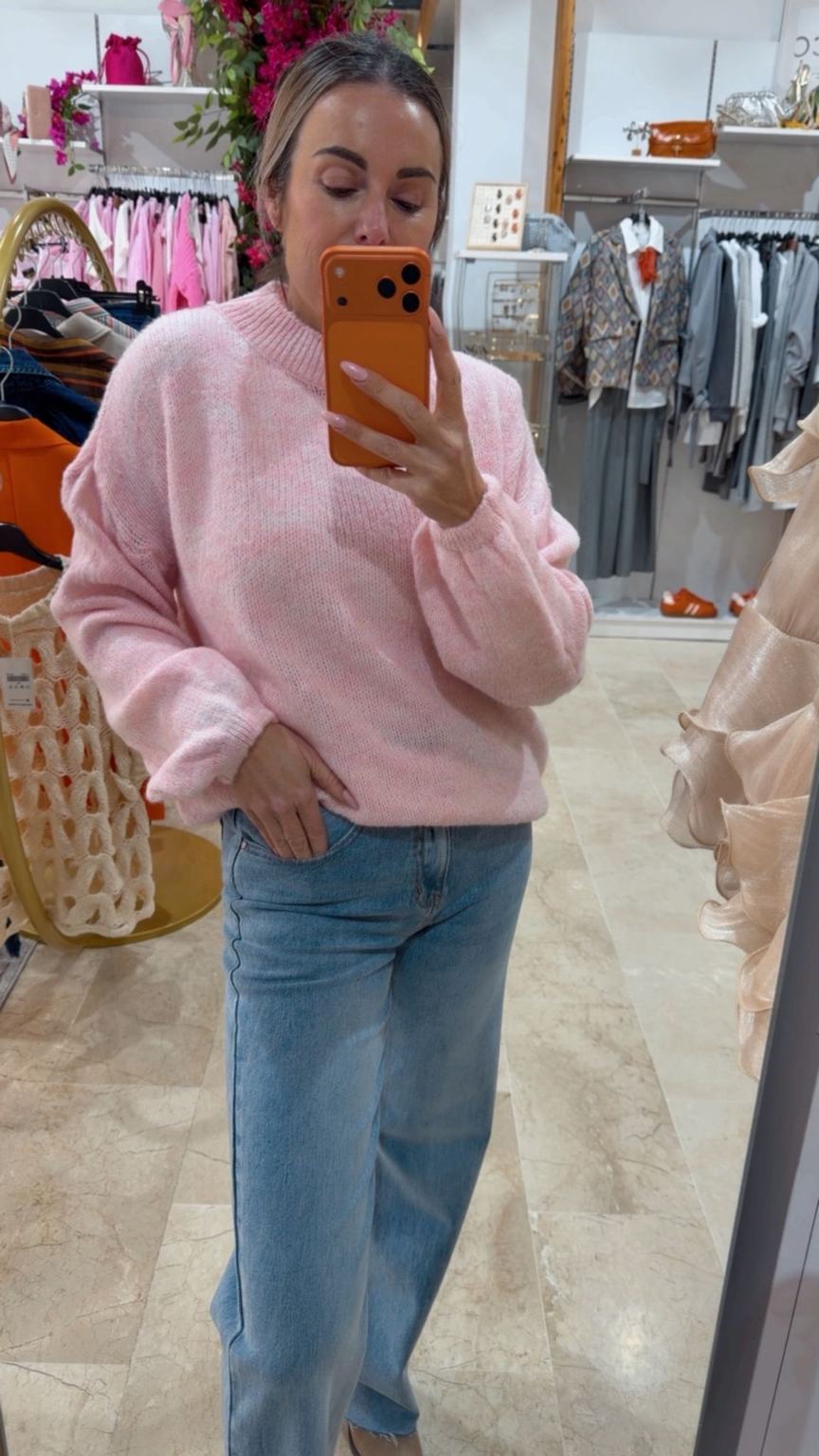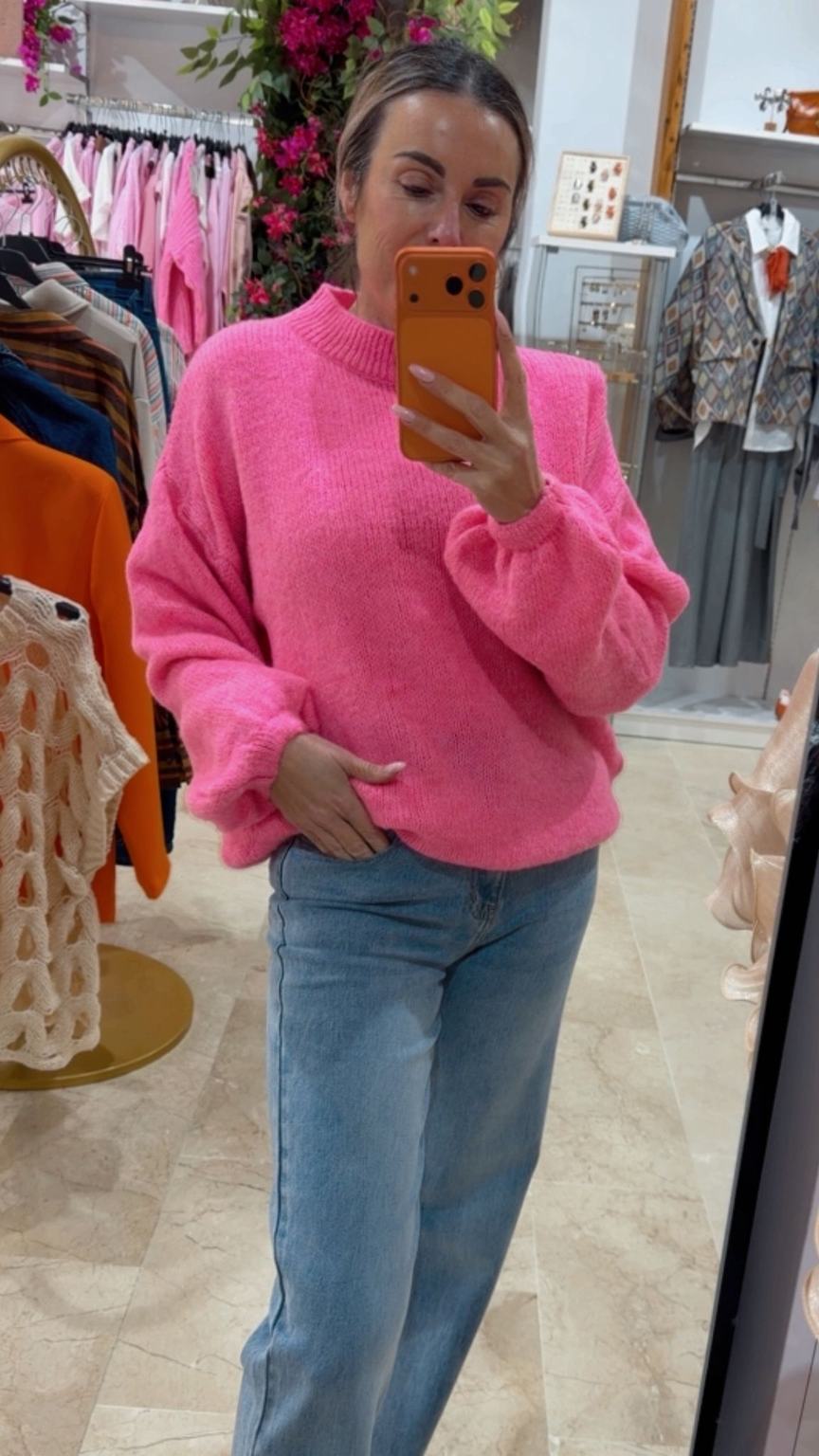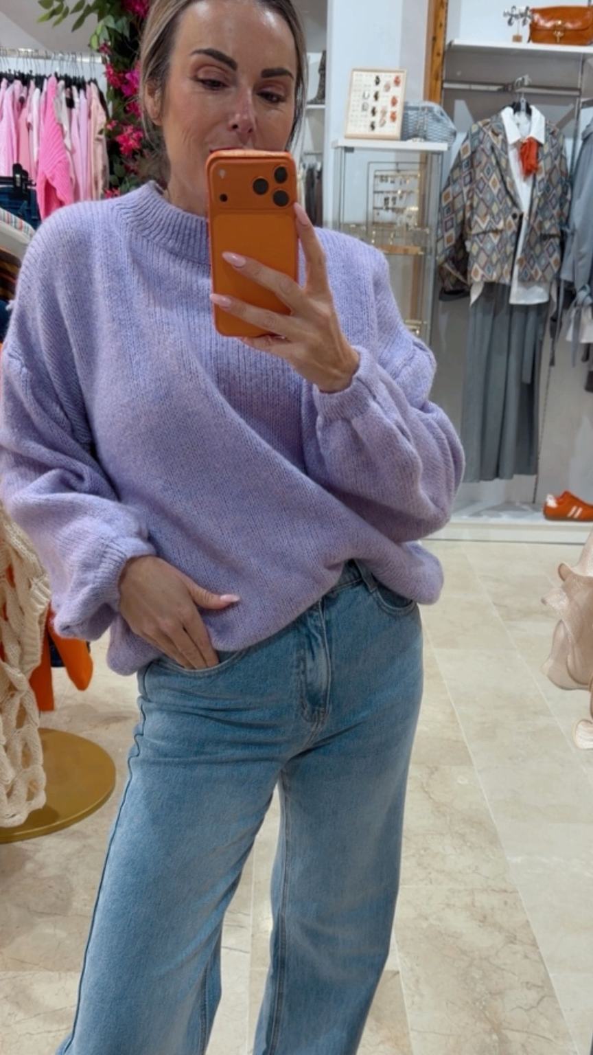 Jersey de punto con escote redondo, con las mangas un poco abullonadas.