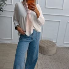 Pantalón vaquero recto, con cierre de cremallera y botón. Tiene bolsillos delante.
