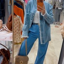 Sobrecamisa vaquera con encaje en los filos y cierre delante con botones que no se ven. Da adorno lleva tres con piedra y filo doradito.